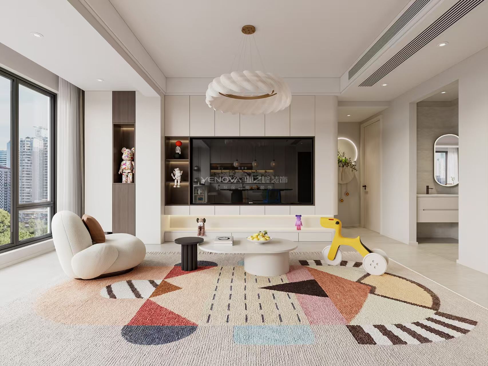 案例名称:康田星樾103平多巴胺现代三居装修案例