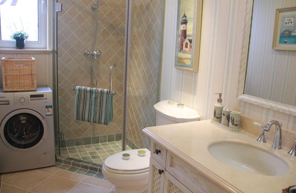 卫生间的墙壁面积很大,因此,我们必须要选择防水性强,又具有抗腐蚀与抗霉变的材料。容易清洗的瓷砖、大理石、马赛克等材料,花色多样,可拼贴出丰富漂亮的图案,而且光洁平整,又便于干燥,是卫生间装修中非常实用的壁面材料,但要需要注意的一点是,墙面材料的选择要与地面材料色彩和谐统一。