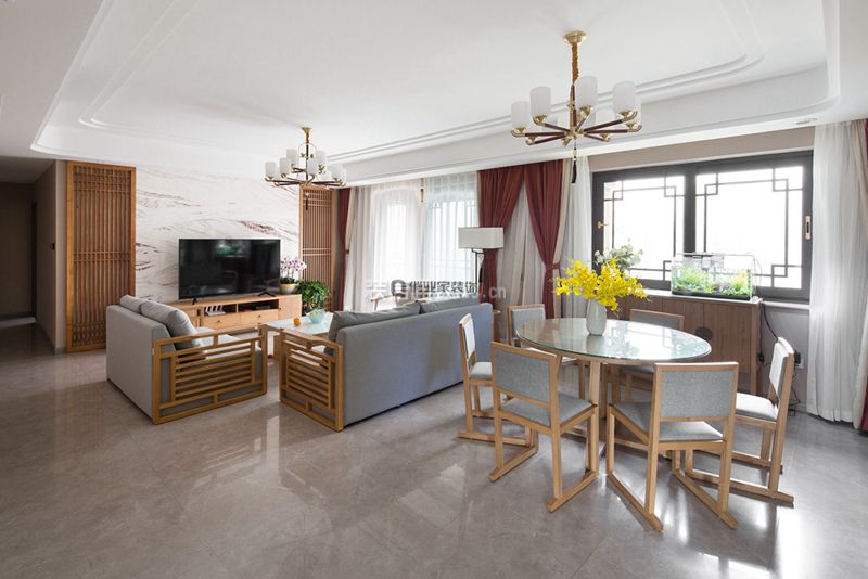 小区:融创御景风格:新中式面积:160㎡户型:四居室造价:12万装修方式:半包