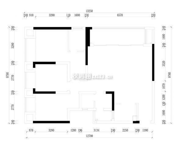 4、卧室、多功能室入口附近墙体多、形成的通道造成空间浪费:拆除多余墙体,改变卧室门方向,减少通道空间;多功能室墙体内推且打半墙,为主卧衣帽间扩宽空间。
