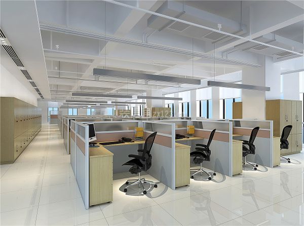 2、另外,高端办公室装修的配套设计中的细节问题。配套设计包括办公家具、窗帘、画盆景等:办公家具重要的一点是突出了整个办公空间的等级制;家具规格的大小、活动屏风的高矮、办公位置的设置能体现该位置办公人员在企业的职位大小。在办公空间中,窗帘一般会选用垂直百叶帘,卷帘只有在会议室和总经理办公空间中才出现;垂直布帘原则上不宜用在办公空间中。