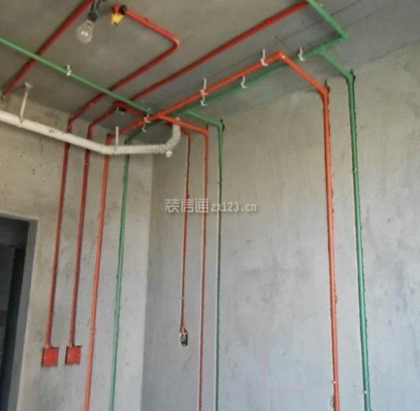 由于卫生间地板长期处于潮湿的状态,所以通常是选择走顶。其标准是:水管在下、电线管在上,并且保证横平竖直。
