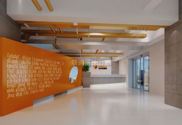 形象墙的设计,设计师采用了橘黄色,这样会更加醒目,让形象墙的功能作用可以得到最大化开发和利用。