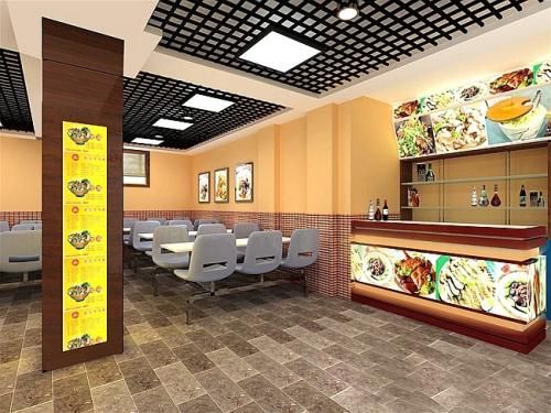 快餐店装修设计,总体布局是通过交通空间、使用空间、工作空间等要素的完美组织所共同创造的一个整体。作为一个整体,快餐店的空间设计首先必须合乎接待顾客和使顾客方便用餐这一基本要求,同时还要追求更高的审美和艺术价值。原则上说,快餐店的总体平面布局是不可能有一种放诸四海而皆准的真理的,但是它确实也有不少规律可循,并能根据这些规律,创造相当可靠的平面布局效果。快餐店内部设计首先由其面积决定。由于现代都市人口密集,寸土寸金,因此须对空间作有效的利用。从生意上着眼,第1件应考虑的事就是每一位顾客可以利用的空间。厅内场地太挤与太宽均不好,应以顾客来快餐店的数量来决定其面积大校秩序是快餐店平面设计的一个重要因素。