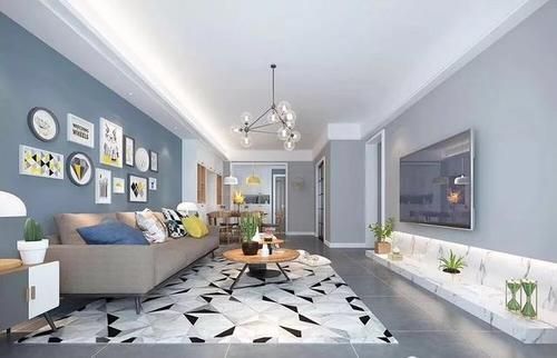 商品房的净高一般在2.5-2.8米之间,为避免室内不压抑,房间会顶部简单处理,墙面也简单装饰,这样不仅可节省费用,装饰效果也一样不差。而地面可多下功夫,因地面使用频率很高,所以选用的材料质量、装饰效果都可选高端些的。