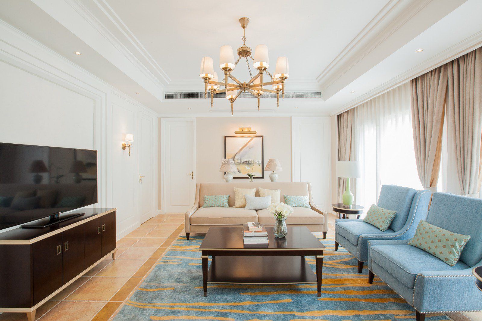 案例名称:春江天境125平米新中式风格四室两厅装修案例
